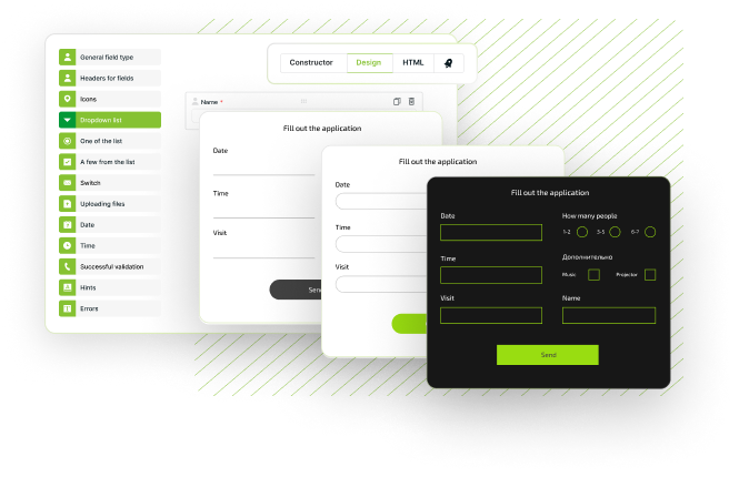 QForm creates feedback for the needs of any business: classic call-back, application forms, booking questionnaires, orders and much more. The QForm widget is a powerful and simple business tool that allows you to collect applications, survey visitors, and study the opinion of the audience